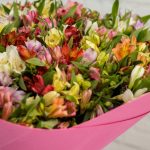 Букет из 9 разноцветных альстромерий в стильной упаковке