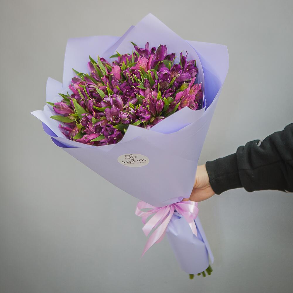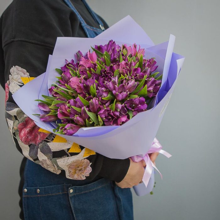 Альстромерия фиолетовая – 19 шт.Атласная лента – 1 шт.