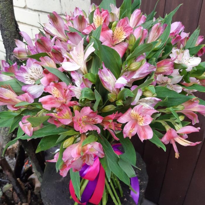 Альстромерия – 21 шт.Лента атласная – 2 шт.