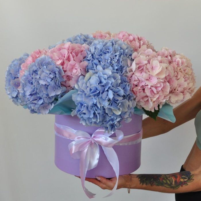 Гортензия, 21 штучка. Большой букет в коробке
