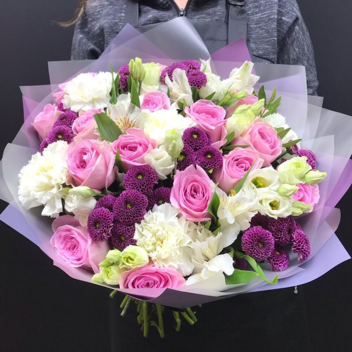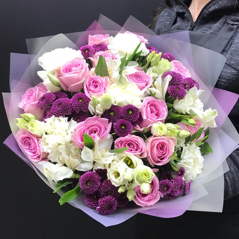 Гвоздики, Кустовые розы, Лизиантусы, Пионовидные розы, Розы