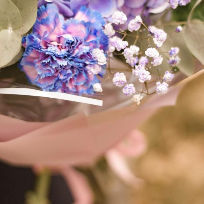 «Лавандовое созвездие» Букет из розы, гвоздики, статица и хлопка