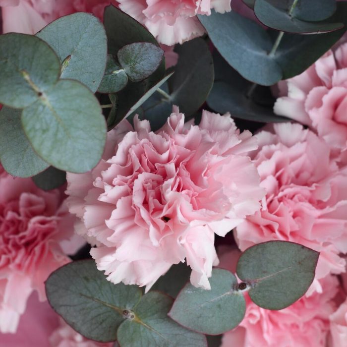 МОНО из розовых диантусов и эвкалипта