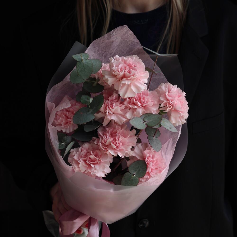 Эвкалипт – 3 шт.Диантус – 9 шт.Упаковка дизайнерская – 1 шт.