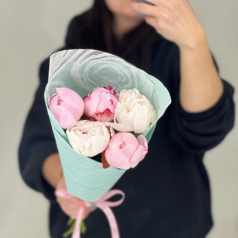 Упаковка – 2 шт.Лента атласная – 1 шт.хризал – 1 шт.пион сара бернар израиль – 5 шт.