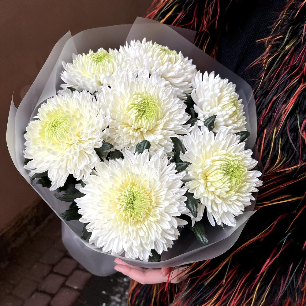 Белые ночи: 7 стойких хризантем в стильной упаковке