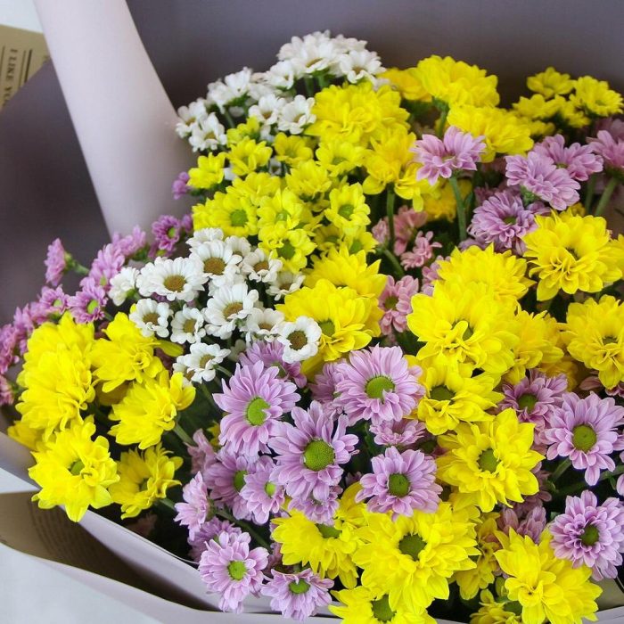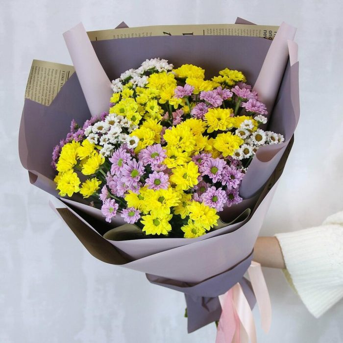 Хризантема кустовая Сантини – 15 шт.Пленка – 2 шт.Лента – 1 шт.