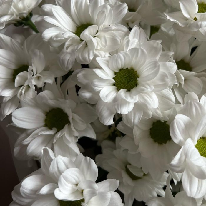 кустовая хризантема ромашка – 13 шт.декоративная упаковка – 1 шт.Атласная лента – 1 шт.