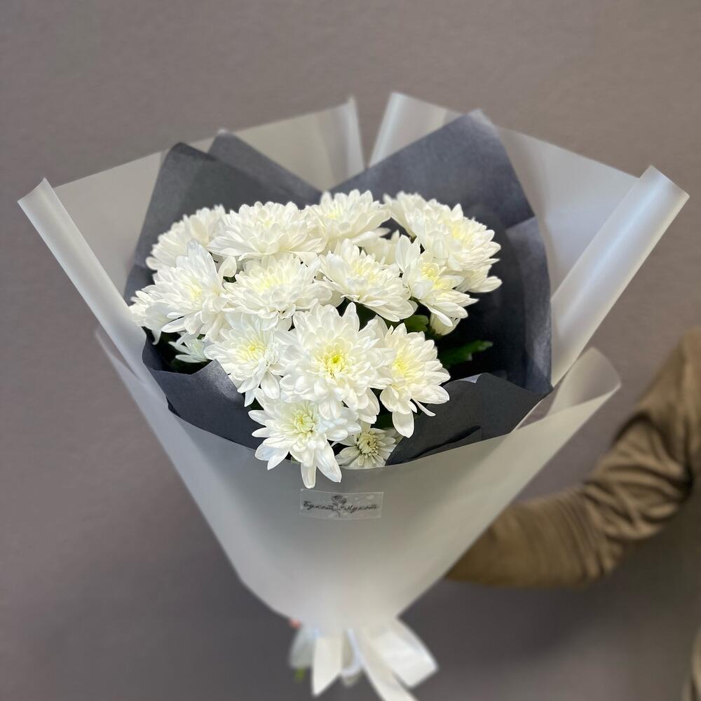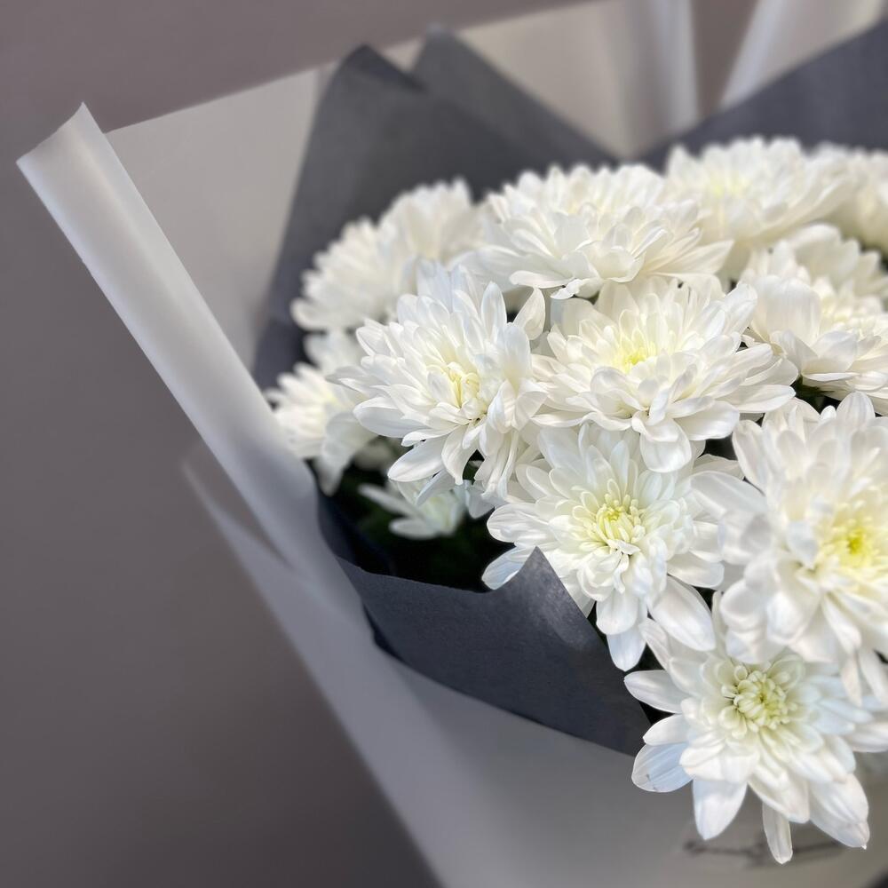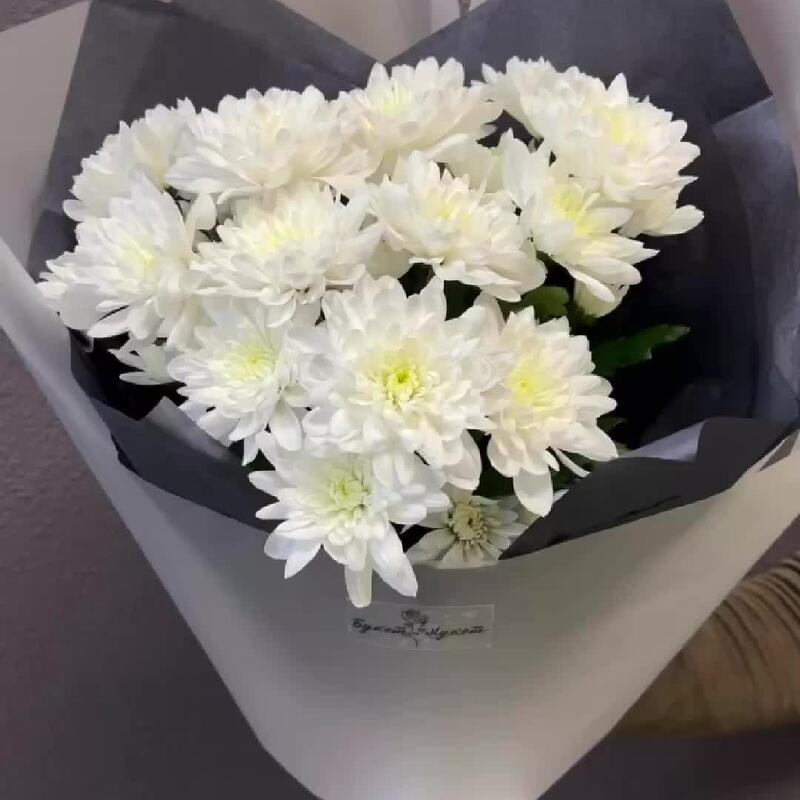 Хризантема кустовая – 3 шт.Лента атласная – 1 шт.Тишью – 2 шт.Пленка – 2 шт.