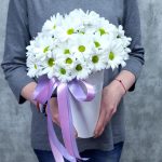 “Сиреневый туман” – композиция из гипсофилы в шляпной коробке
