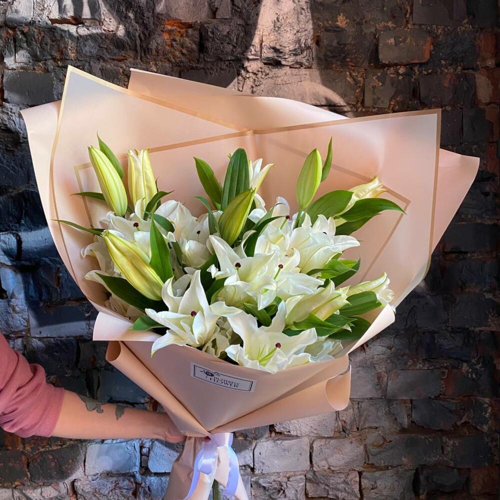 Букет из 7 белых лилий в стильной упаковке “Бандон”