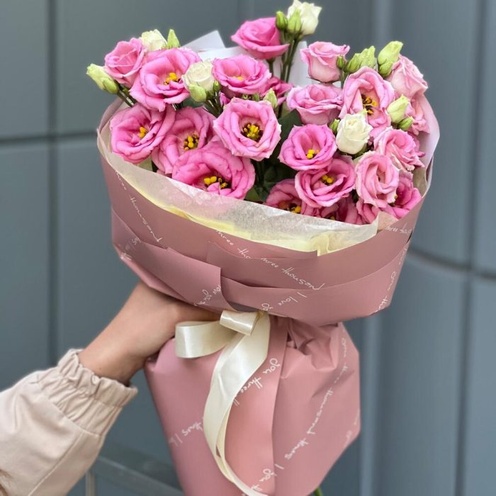 эустома розовая – 7 шт. Оформление – 1 шт.