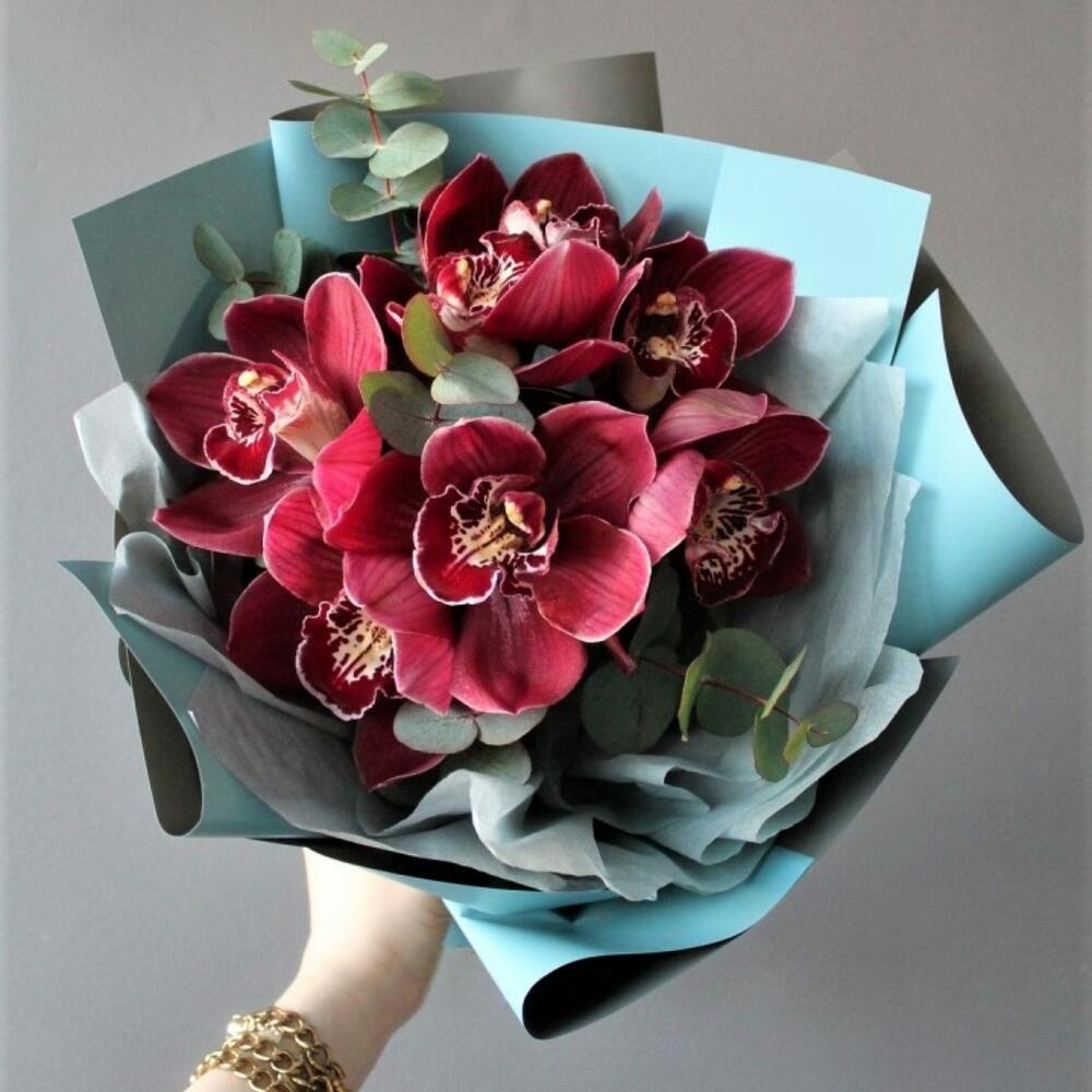 Букет из 9 Орхидей с Эвкалиптом
