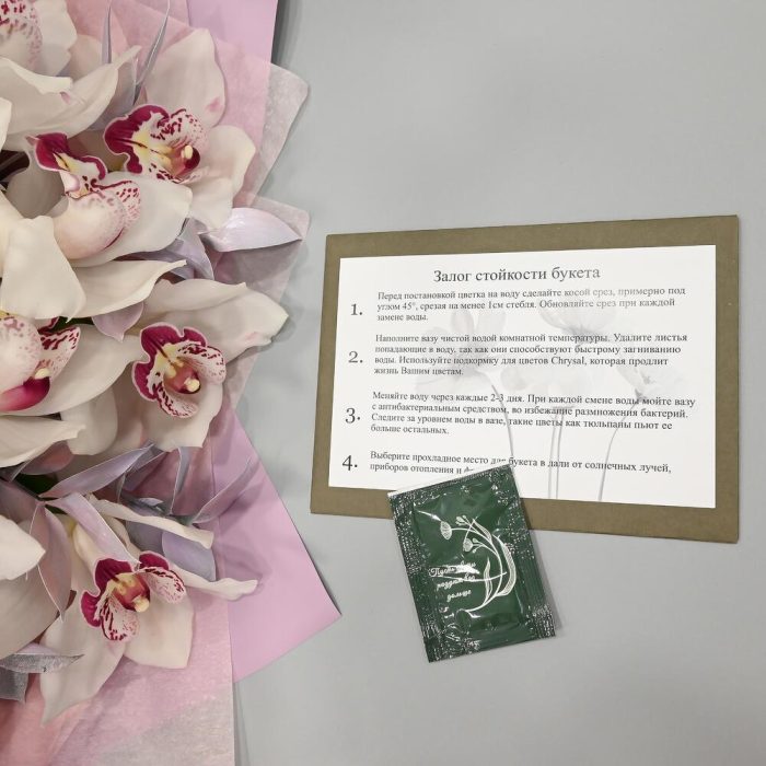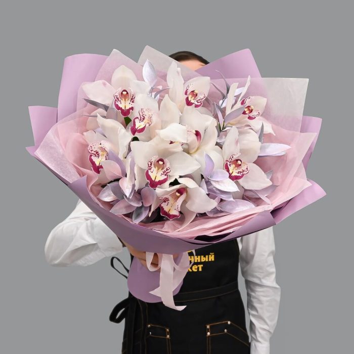 Орхидея Цимбидиум – 9 шт.Рускус – 10 шт.Упаковка дизайнерская – 1 шт.