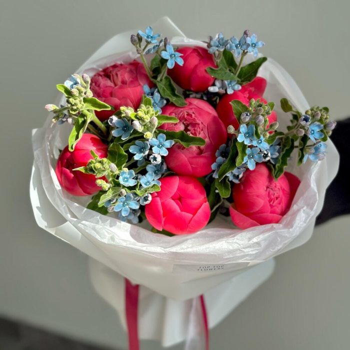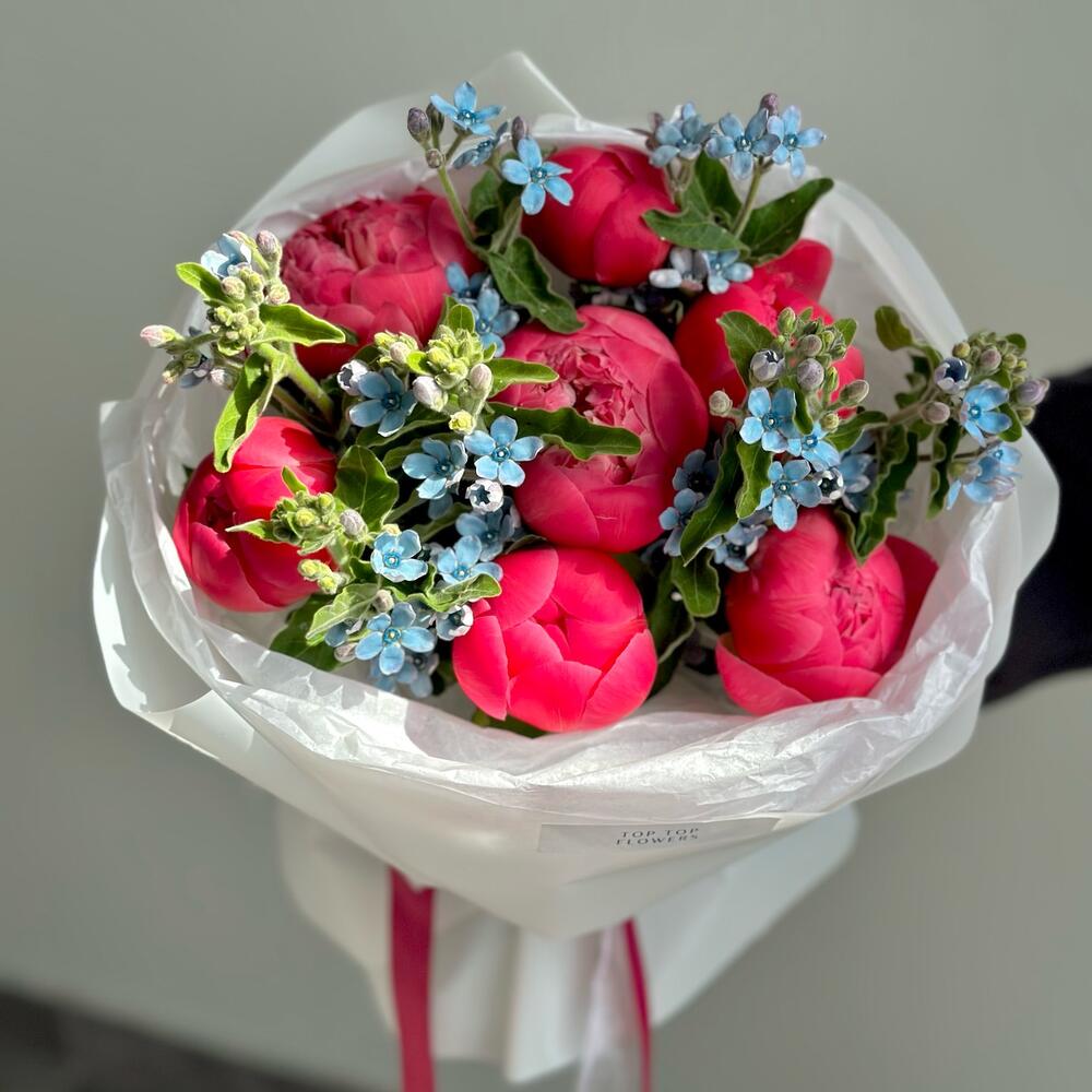 Букет с пионами и незабудками