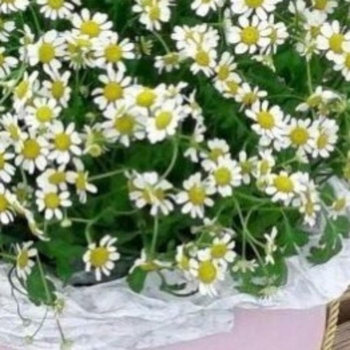 Ромашка кустовая – 25 шт.Шляпная коробка – 1 шт.Флористическая губка – 1 шт.Лента – 1 шт.