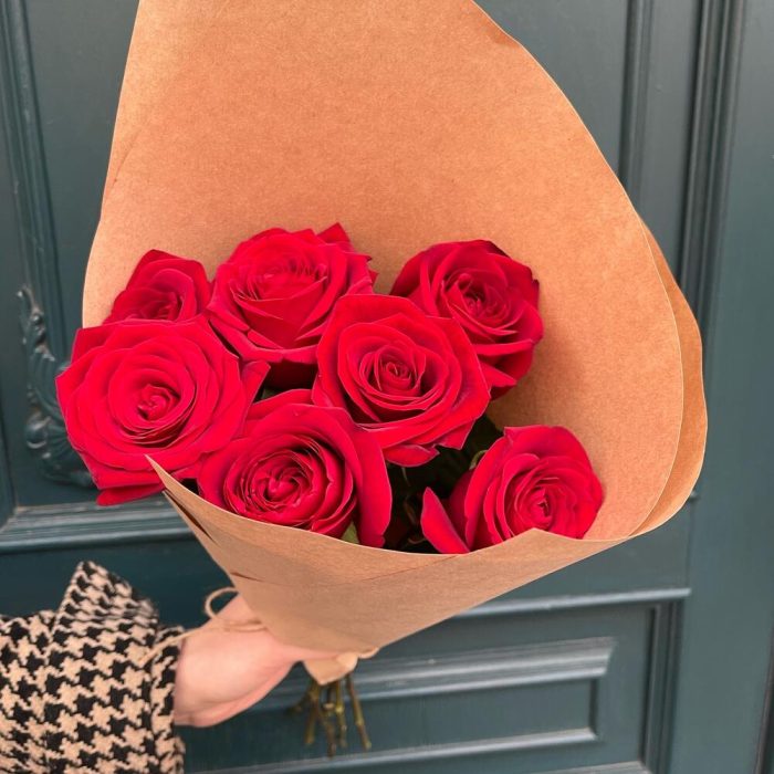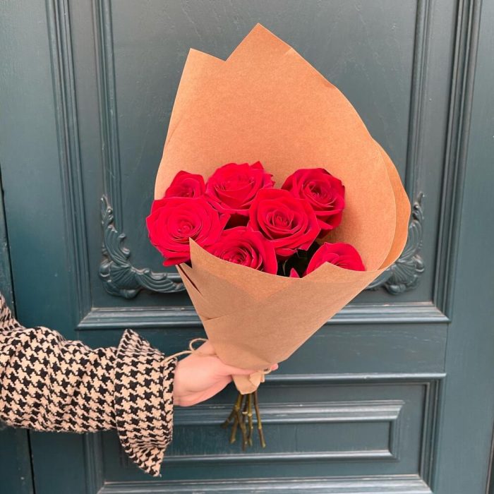 Крафт – 1 шт.Роза красная 50 см – 7 шт.