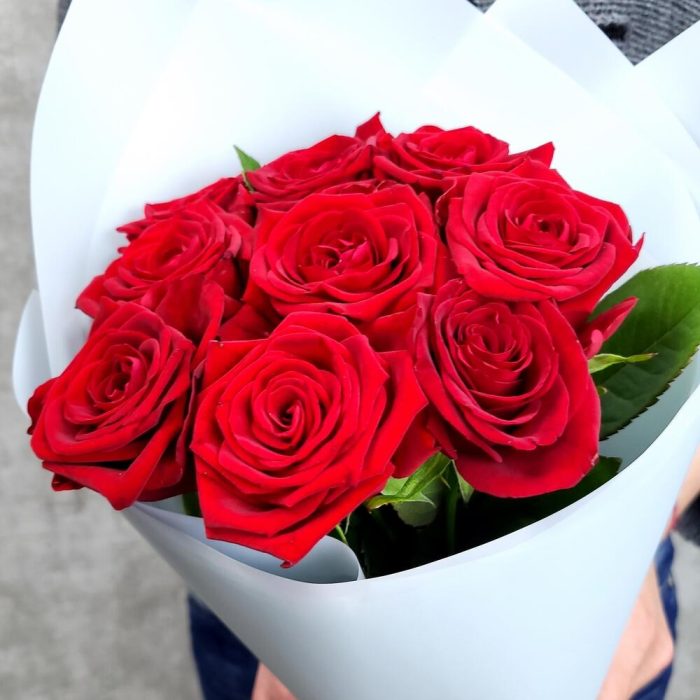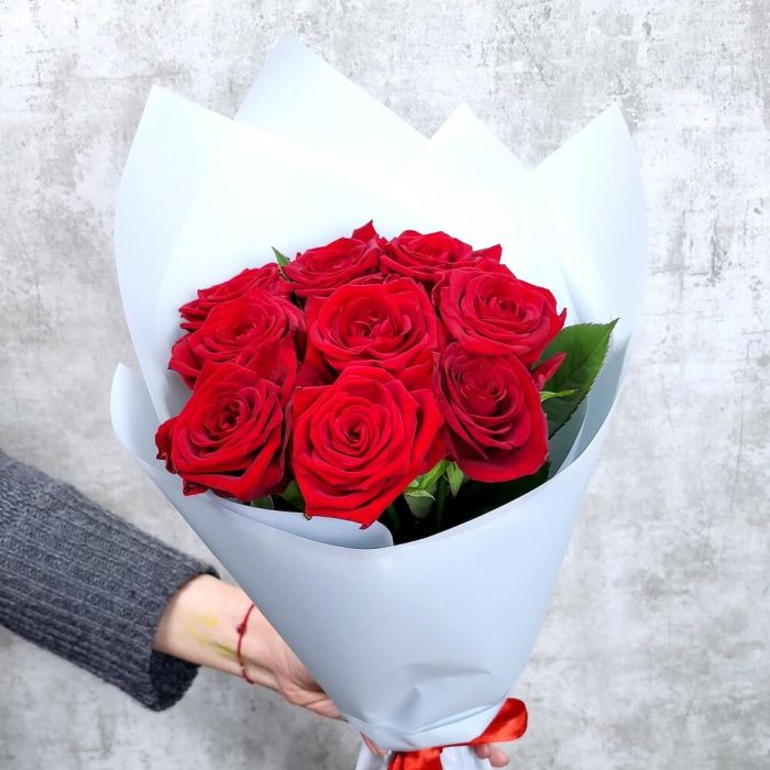 Роза красная 60 см – 9 шт.Упаковка – 1 шт.Лента – 1 шт.