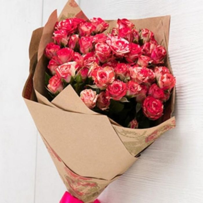 Роза кустовая – 9 шт.Упаковка дизайнерская – 1 шт.