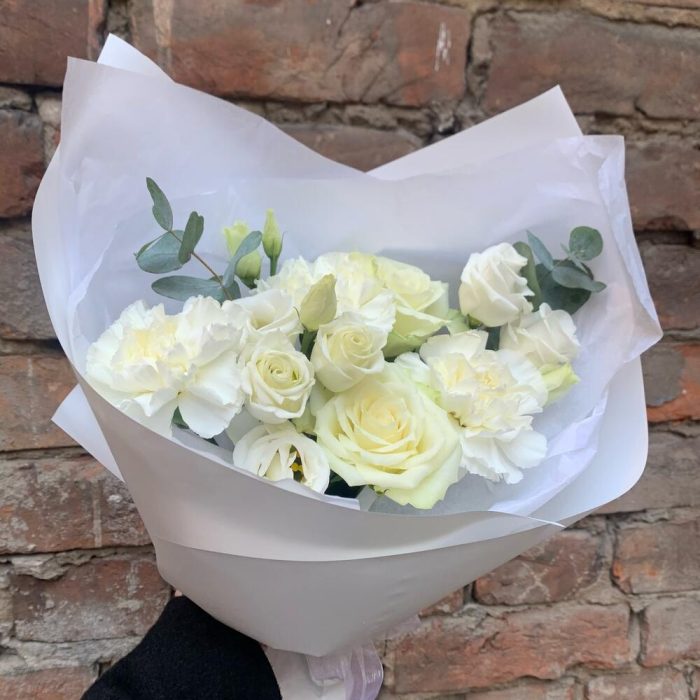 Лизиантус – 1 шт.Роза – 2 шт.Гвоздика – 3 шт.Упаковка дизайнерская – 1 шт.