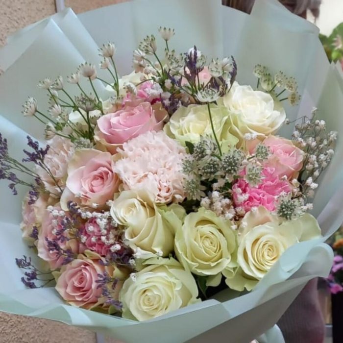 Букет 19 роз и гвоздик “Зефир ” из роз и гвоздик