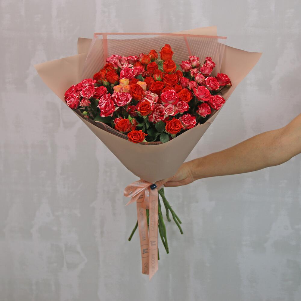 Букет из 15 высоких кустовых роз (Кения) 60-70 см в стильной упаковке