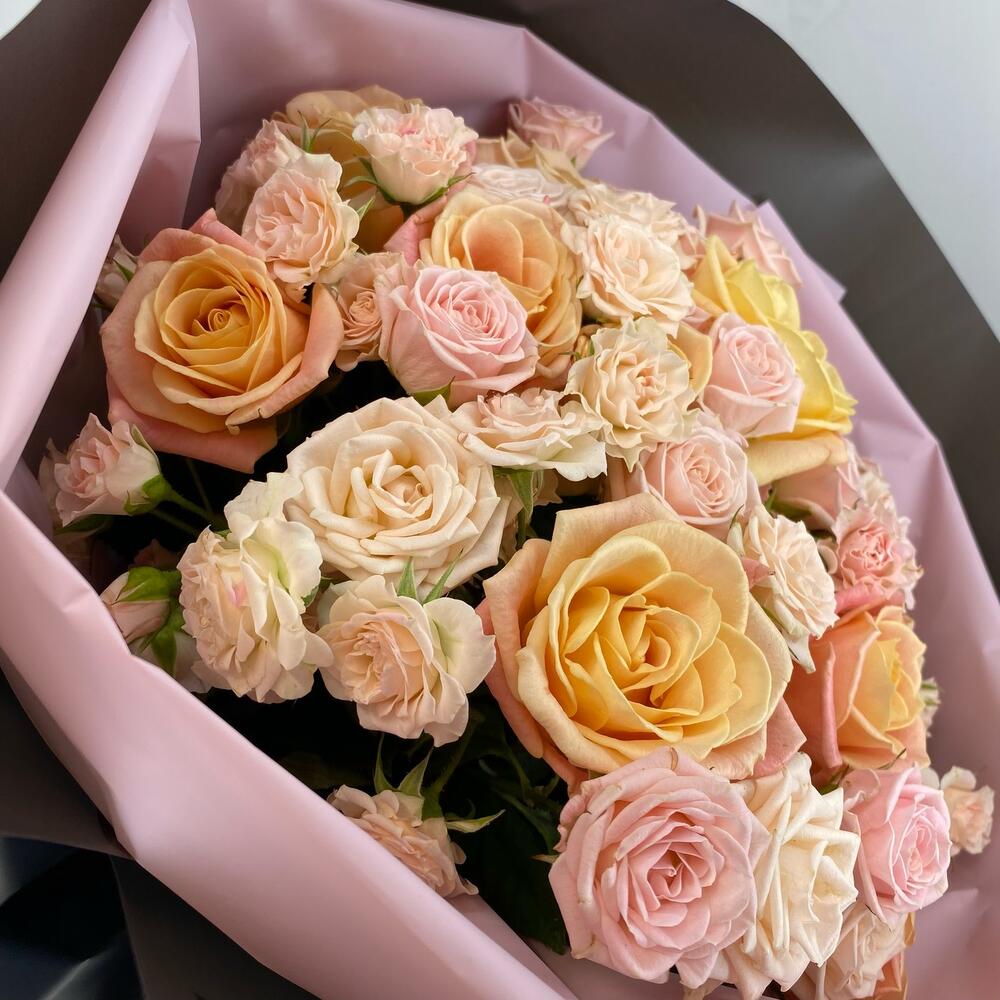 Букет из 29 кустовых и одноголовых роз