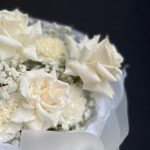 Роза – 3 шт.диантусы – 5 шт.Гипсофила – 4 шт.декоративная упаковка – 1 шт.Атласная лента – 1 шт.