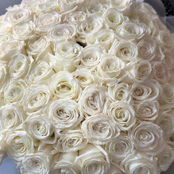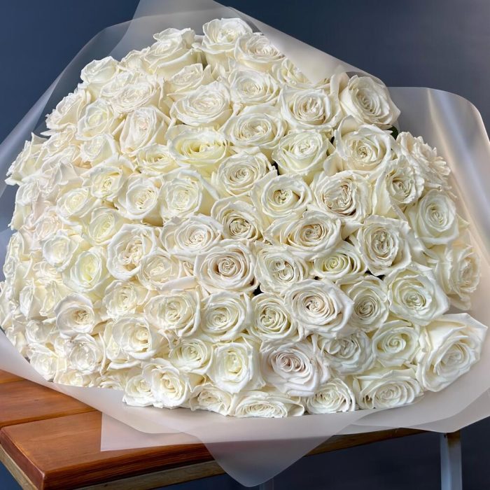 роза пионовидная плая бланка – 99 шт.матовая прозрачная корейская пленка – 4 шт.Лента атласная – 2 шт.