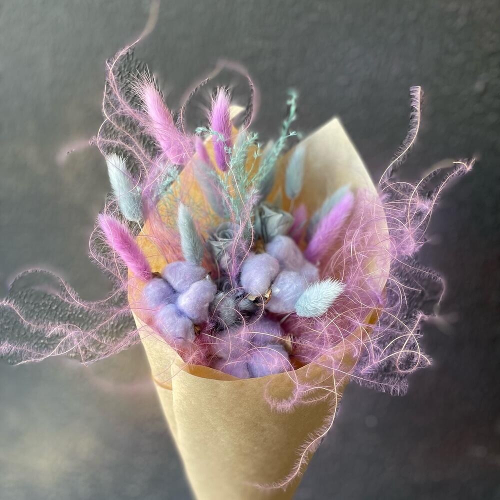 Букет из сухоцветов в розовых тонах с хлопком