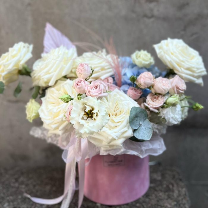 БАРХАТ стойкие розы в бархатной шляпной коробке