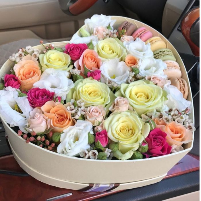Композиция в виде сердца с печеньями макаронс