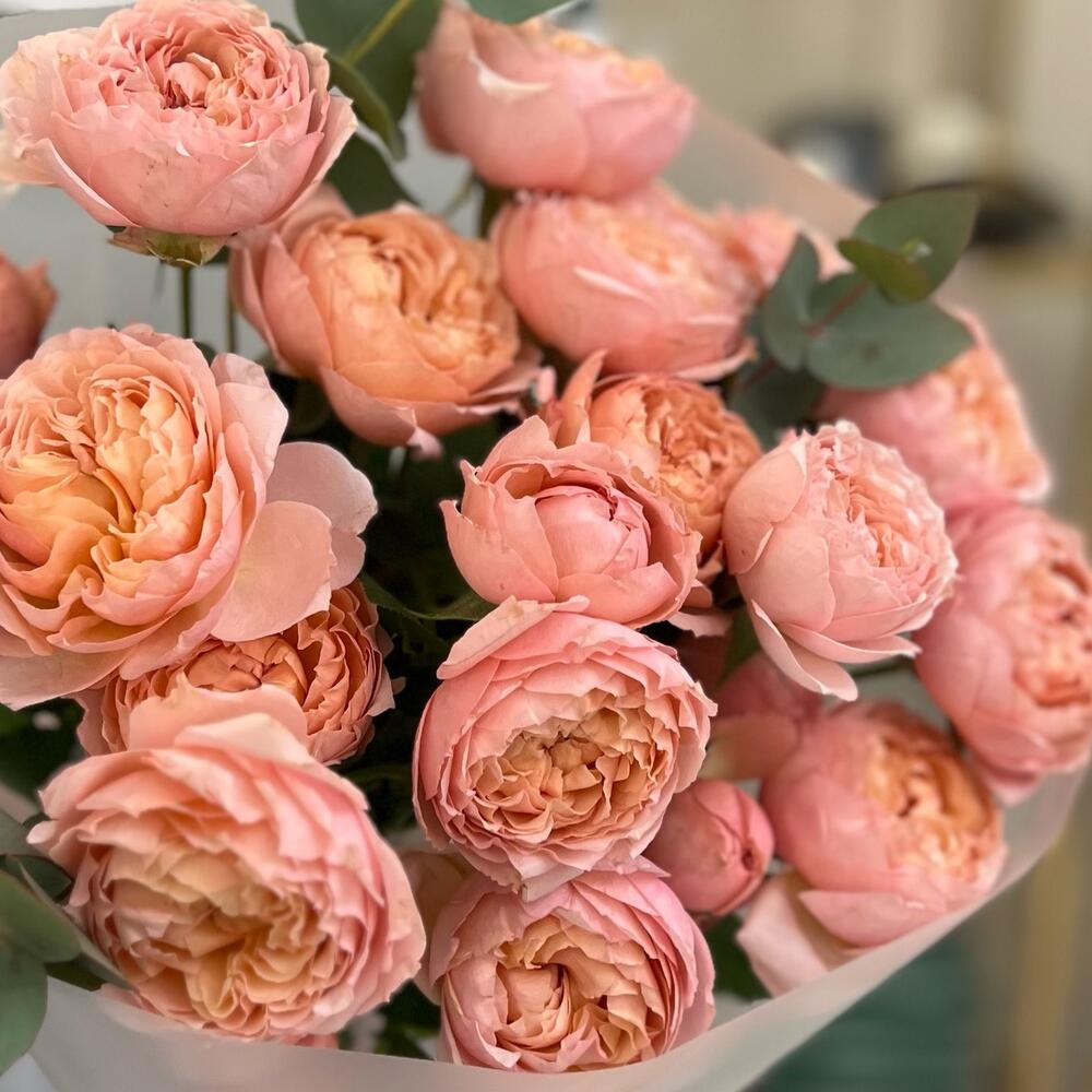 джульетта роза пионовидная – 5 шт.Эвкалипт – 1 шт.Упаковка матовая – 3 шт.Лента брендированная – 1 шт.Кризал – 1 шт.