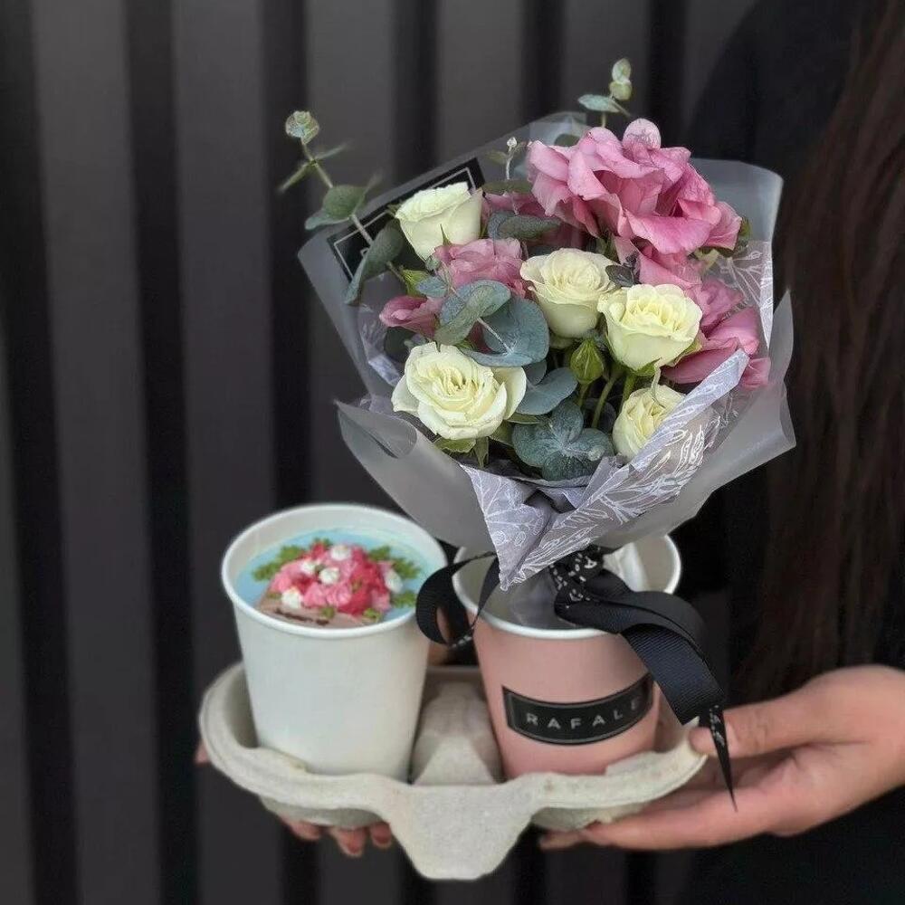 Чудесный сет из бенто в стакане и букета-комплимента!