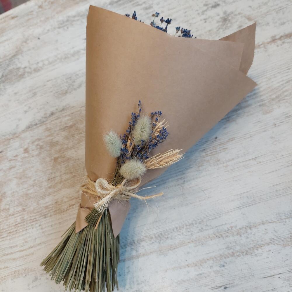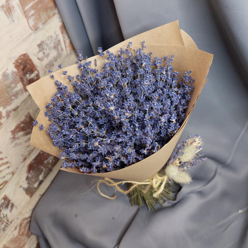 «Лавандовое созвездие» Букет из розы, гвоздики, статица и хлопка