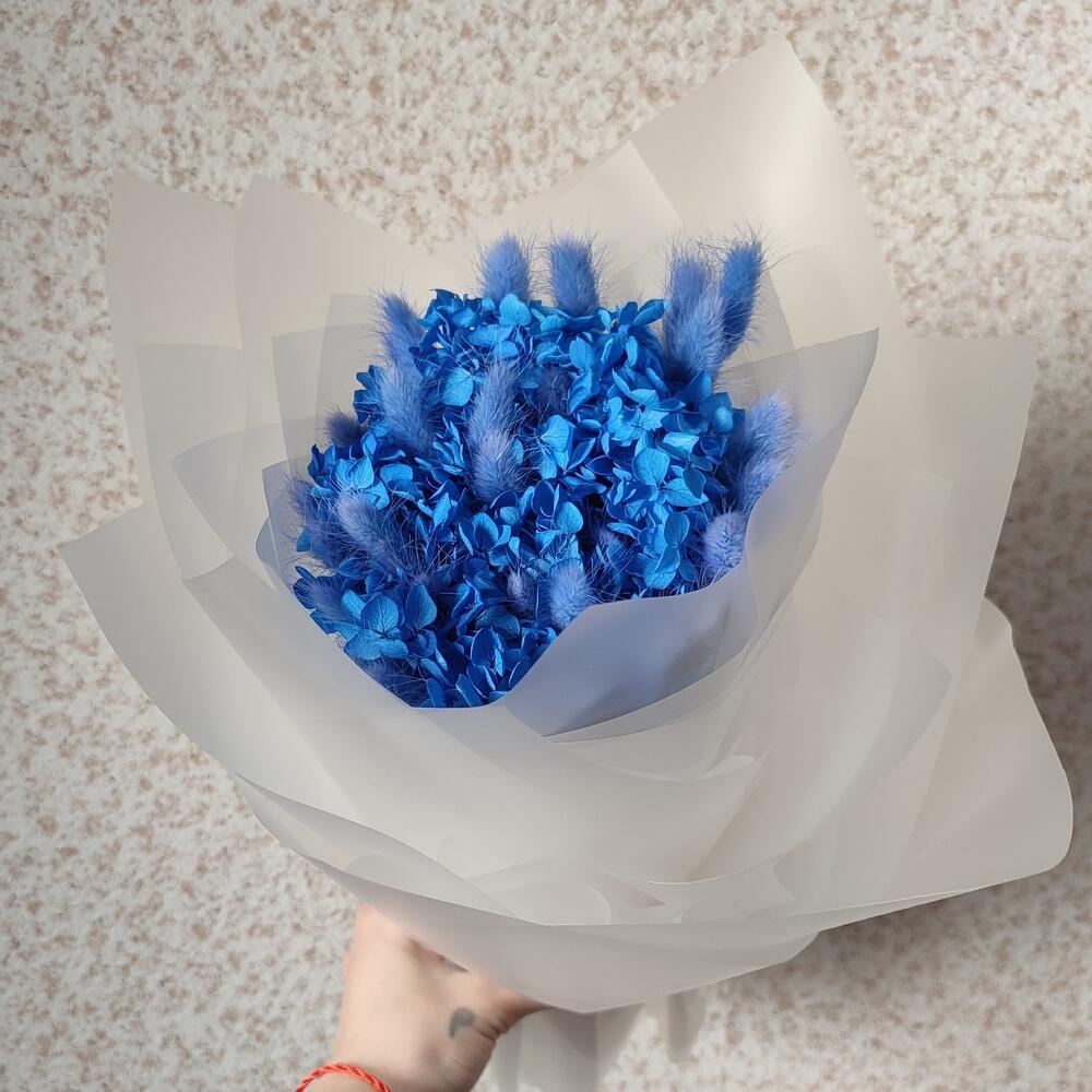 Гортензия синяя – 1 шт.Лагурус (сухоцвет) – 15 шт.