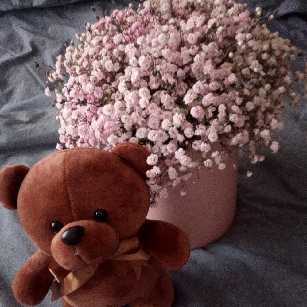 Гипсофила – 25 шт.Лаванда – 35 шт.Шляпная коробка – 1 шт.Флористическая губка – 1 шт.Мишка плюшевый – 1 шт.Пакет подарочный – 1 шт.