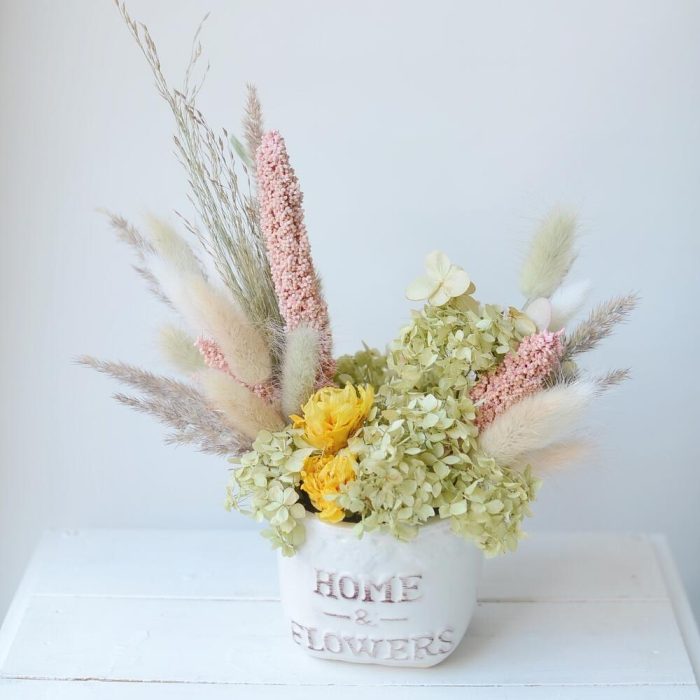 Интерьерная композиция из стабилизированных цветов и сухоцветов