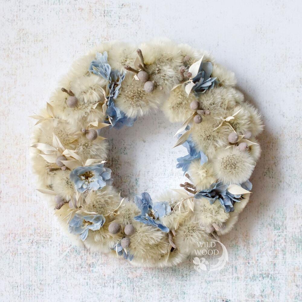 «Лавандовое созвездие» Букет из розы, гвоздики, статица и хлопка