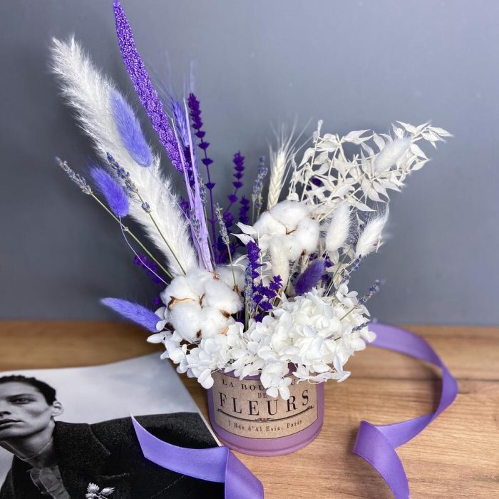 Композиция из сухоцветов в сиреневых оттенках