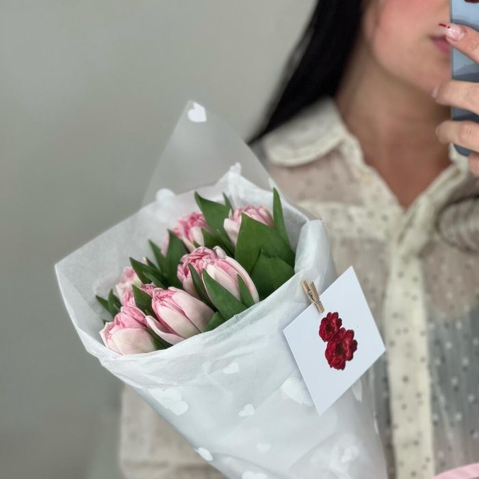 9 пионовидных Тюльпанов в оформлении