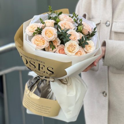 Букет Пинк Экспрешен из 7 роз и эвкалипта